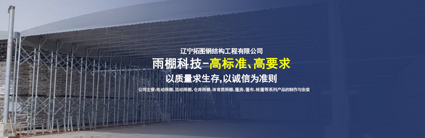 遼寧拓圖鋼結構工程有限公司是一家專業從事推拉篷設計、制作、安裝、使用、維修的綜合性公司。公司主營:電動雨棚、活動雨棚、倉庫雨棚、體育類雨棚、篷房、篷布、帳篷等系列產品的制作與安裝?! ?nbsp; 遼寧拓圖鋼結構工程有限公司堅持以市場為導向,以科技創新為動力,以質量求生存,以誠信為準則,倡導求實、進取、創新的企業精神。“科學的管理、嚴謹的設計、 的制作安裝、嚴格的質量檢測、良好的后期服務成就企業的信譽,為您提供優質服務?! ?nbsp; 遼寧拓圖鋼結構工程有限公司傾力于開發應用三維空間結構與新材料的結合,將廣告藝術視覺表現形式與張力膜材科學的結合,推出多彩推拉蓬,依靠先進的科學技術,將推拉蓬建筑表現形式無限延伸,立志走在建筑科學的前沿,引導建筑時尚潮流,我們的目標是使推拉蓬建筑在中國發展壯大?! ?nbsp; 遼寧拓圖鋼結構工程有限公司憑著極強的事業熱情和豐富的專業經驗以“勤勉進取、銳意創新、至誠至信”的精神使公司得到迅速健康發展,業務范圍遍及全國。科學的管理、嚴謹的設計、高標準的制作安裝流程,嚴格把控產品質量,熱誠的售后服務是企業競爭力的源泉?! ?nbsp; 遼寧拓圖鋼結構工程有限公司人愿以最誠摯的態度,歡迎廣大客戶的蒞臨與溝通!愿為市場提供優...